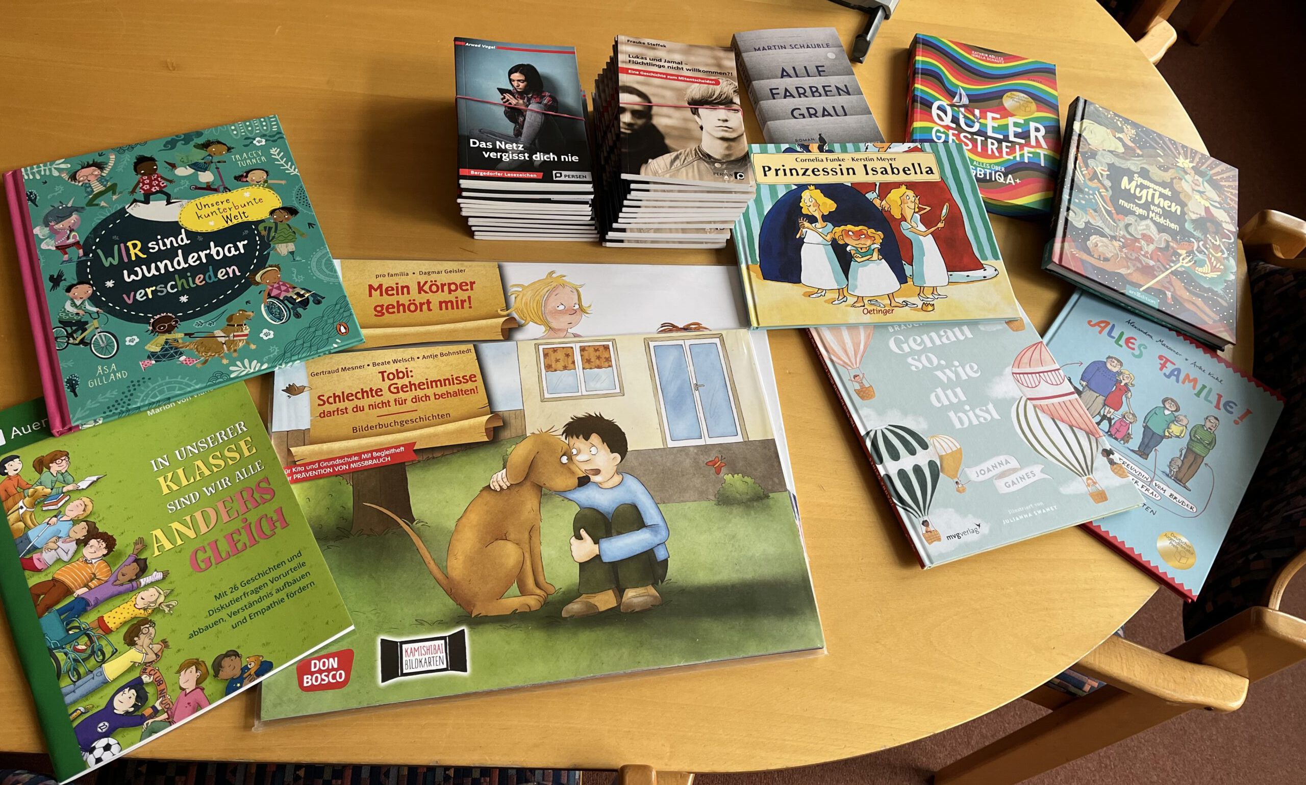 Für Oberstufe haben wir Bücher zum Thema Rassismus und Cybermobbing gespendet bekommen, die in den Klassen gelesen werden können.