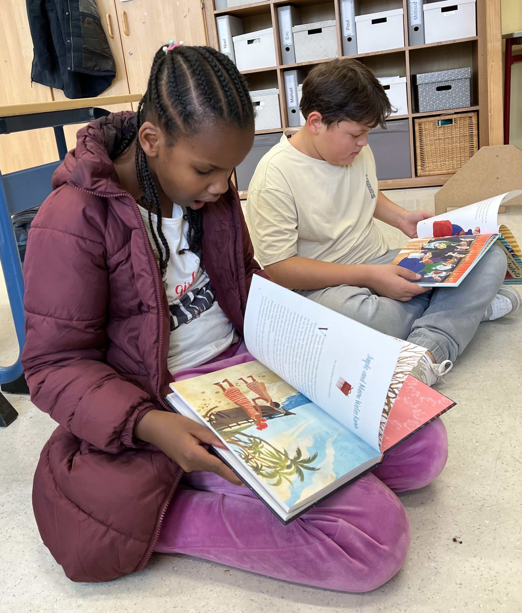 Die Schülerinnen und Schüler freuen der Unterstufe sich über die vielen unterschiedlichen Vorlesebücher.