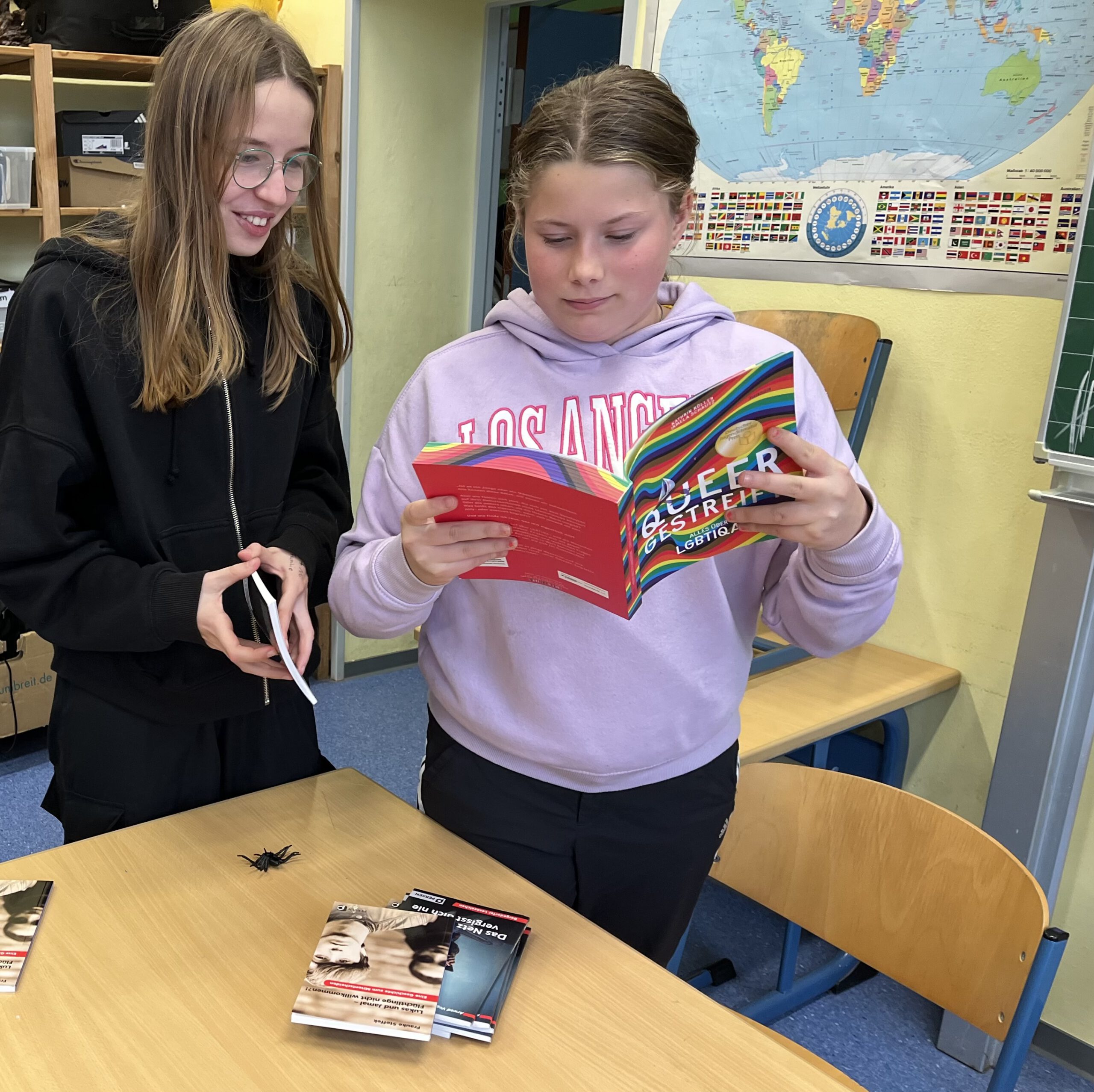 Für Oberstufe haben wir Bücher zum Thema Rassismus und Cybermobbing gespendet bekommen, die in den Klassen gelesen werden können.