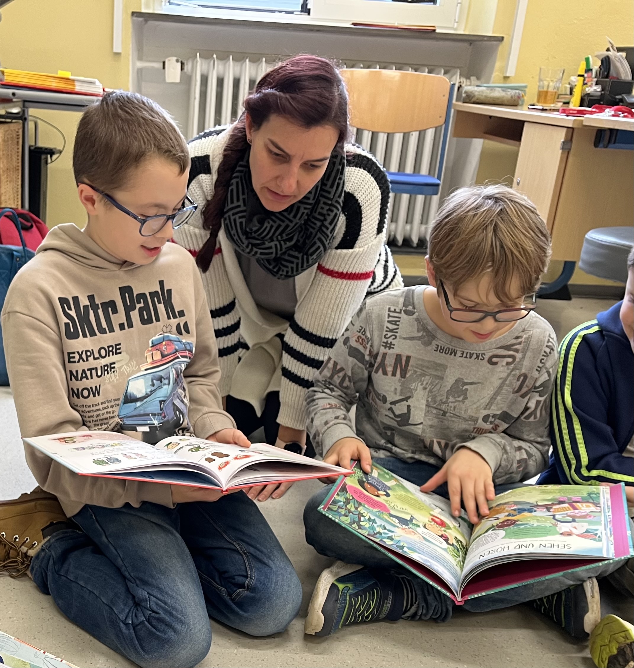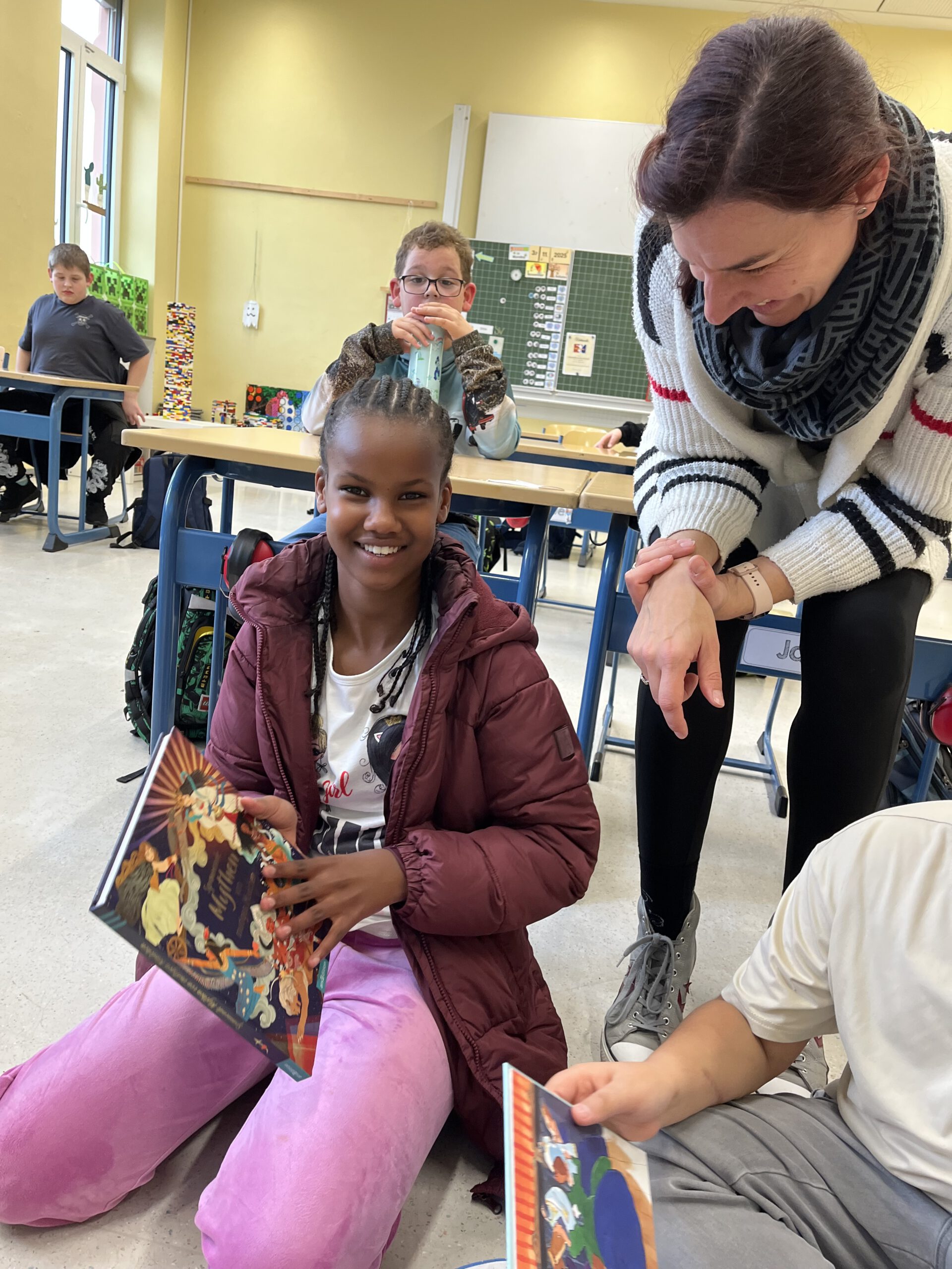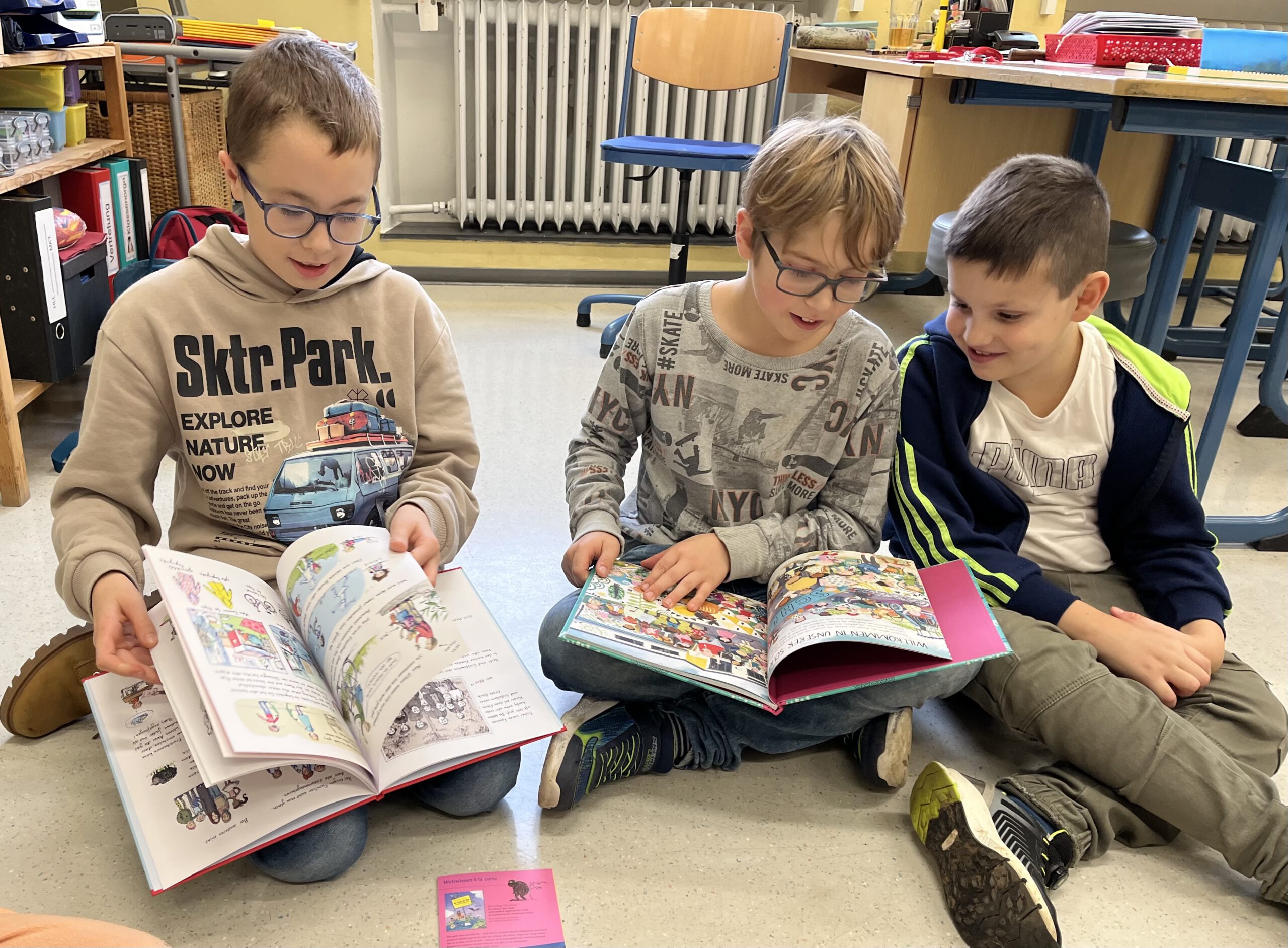 Die Schülerinnen und Schüler freuen der Unterstufe sich über die vielen unterschiedlichen Vorlesebücher.