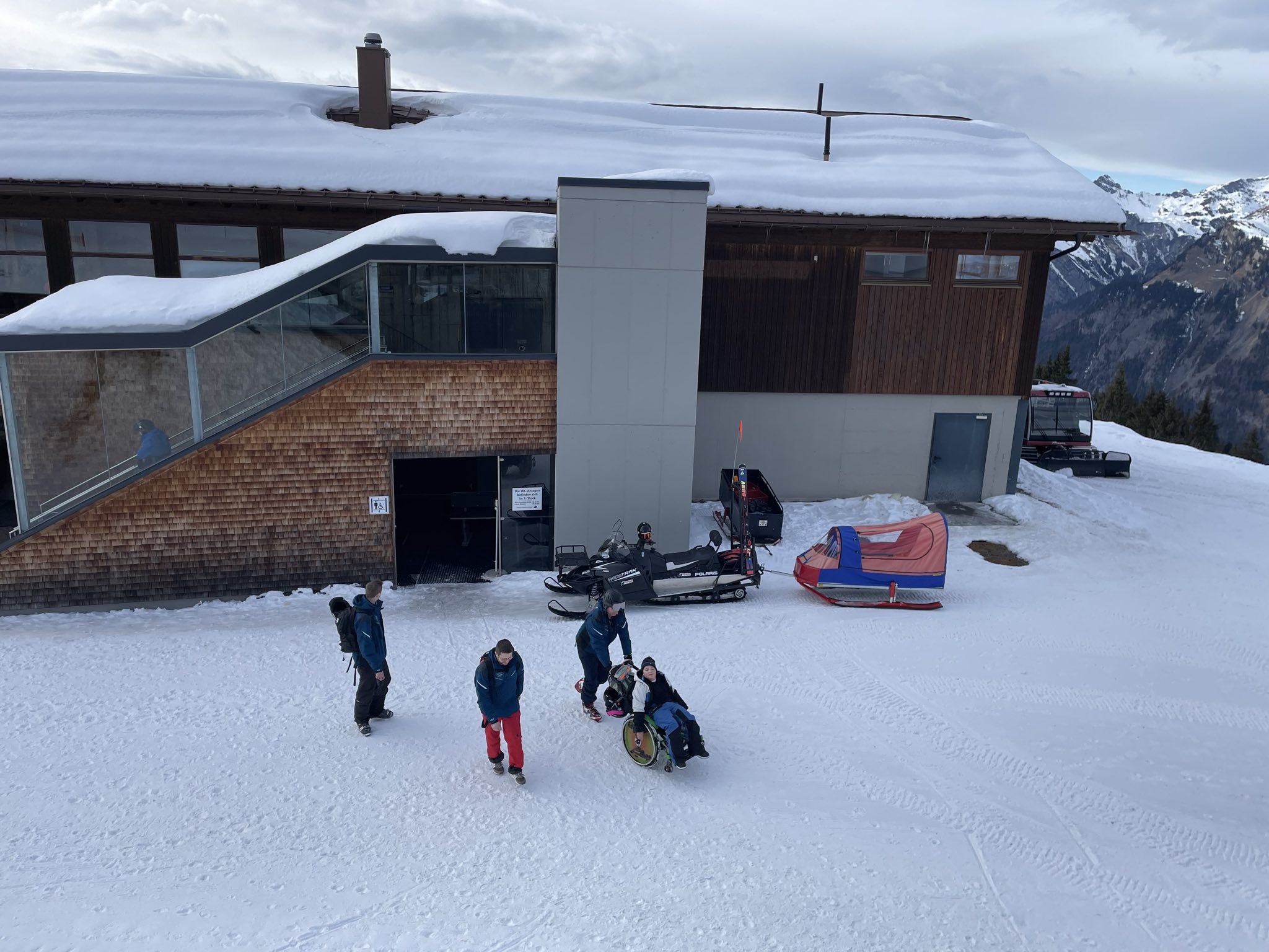 Im Anschluss sind wir mit dem Bus zum Skigebiet gefahren und auf den Berg gegondelt.