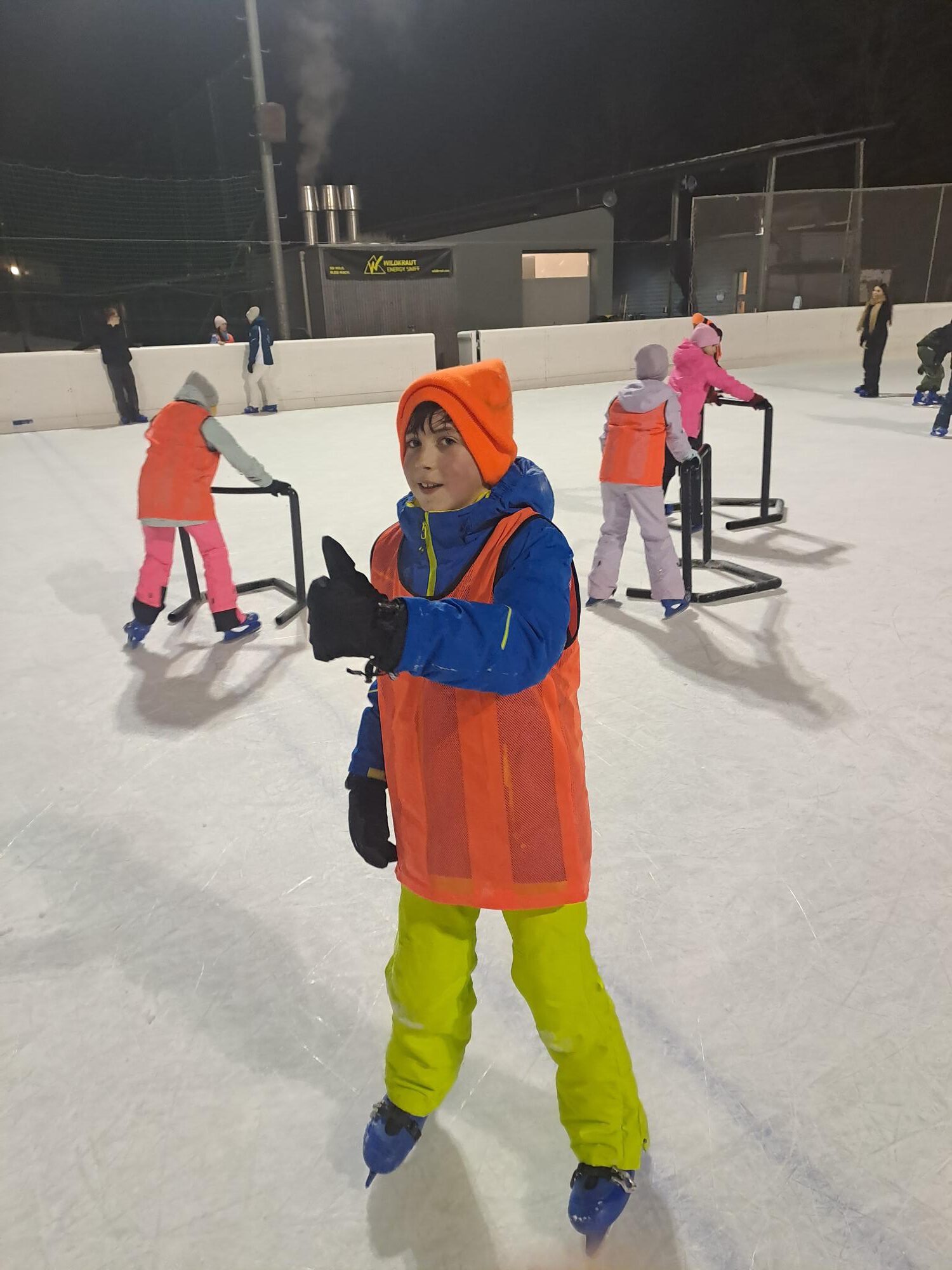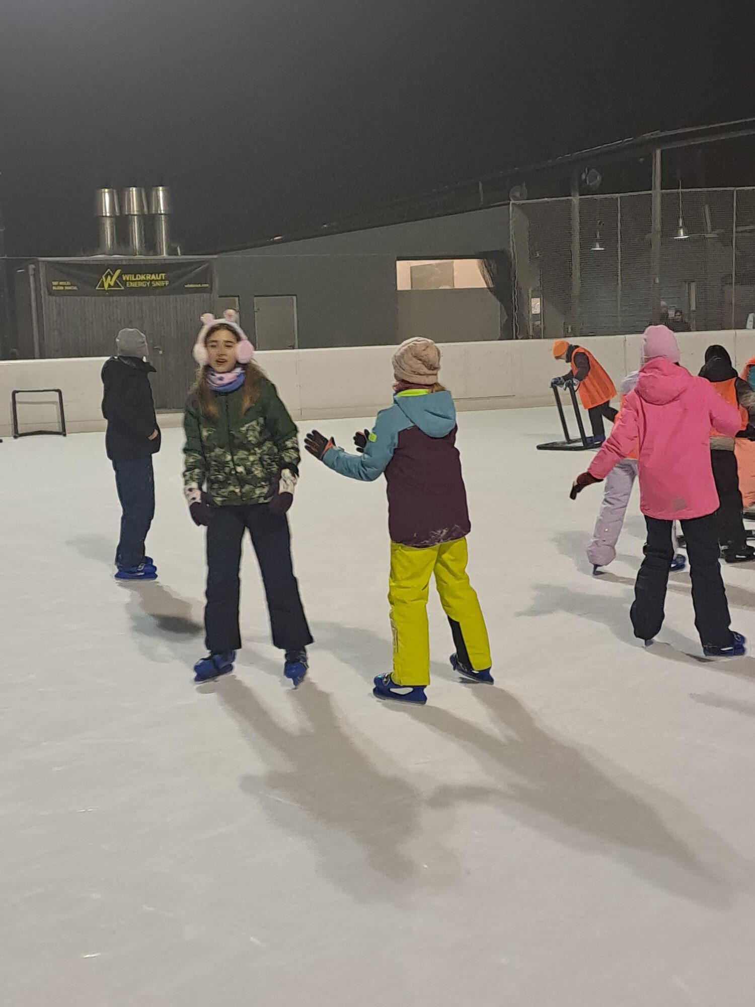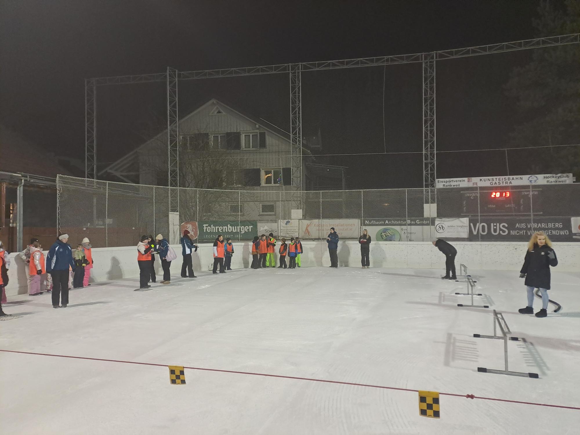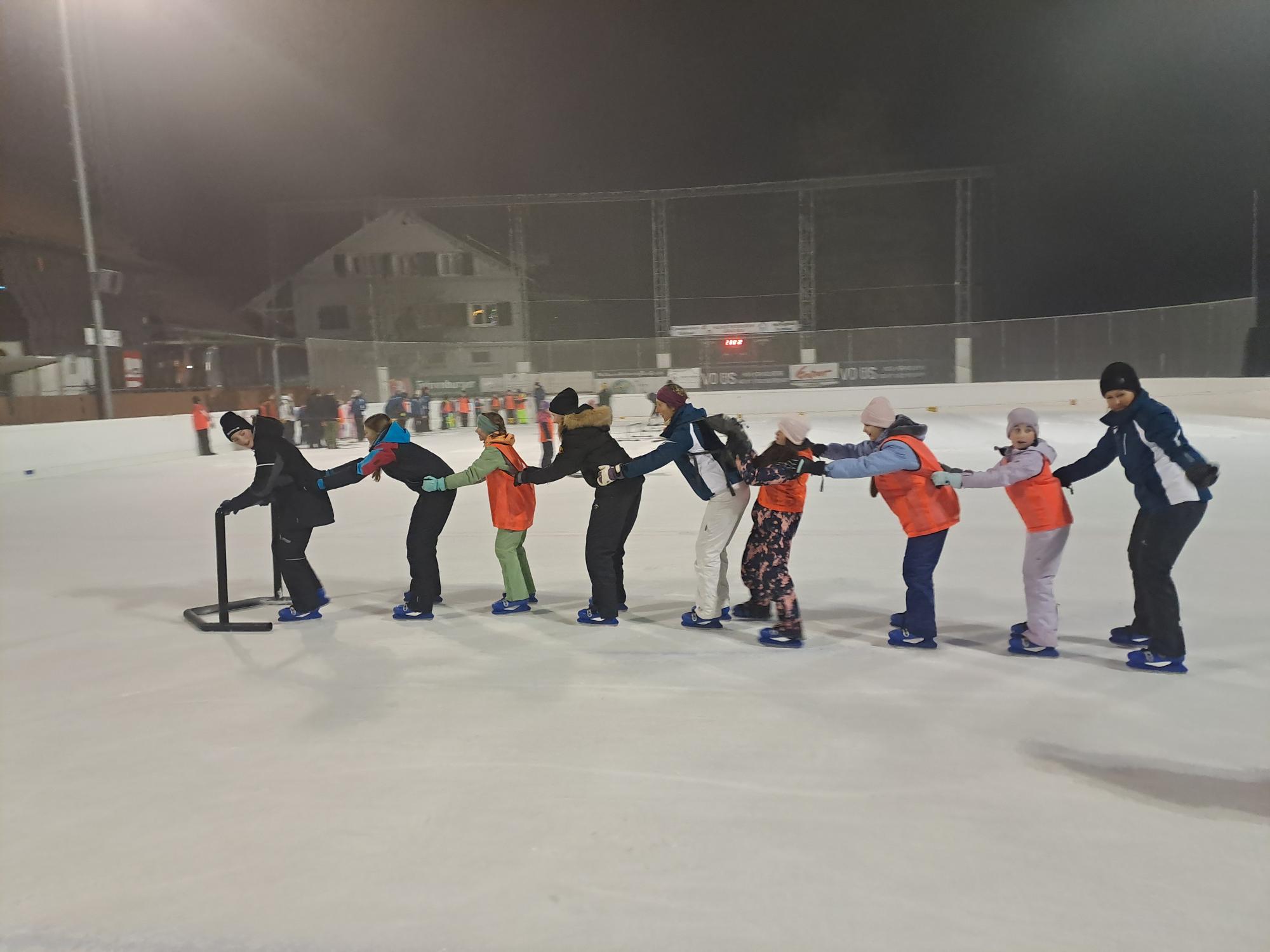 Nach dem Abendessen sind wir mit der Bahn nach Rankwil gefahren und haben uns im Eisstockschießen ausprobiert oder sind Schlittschuh gelaufen.