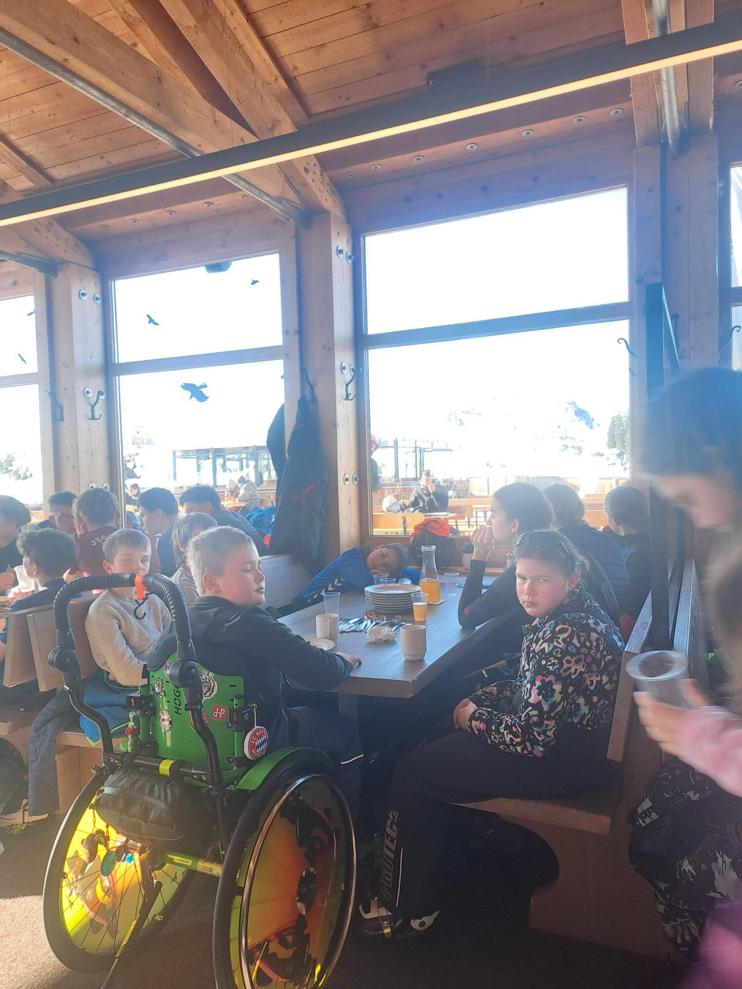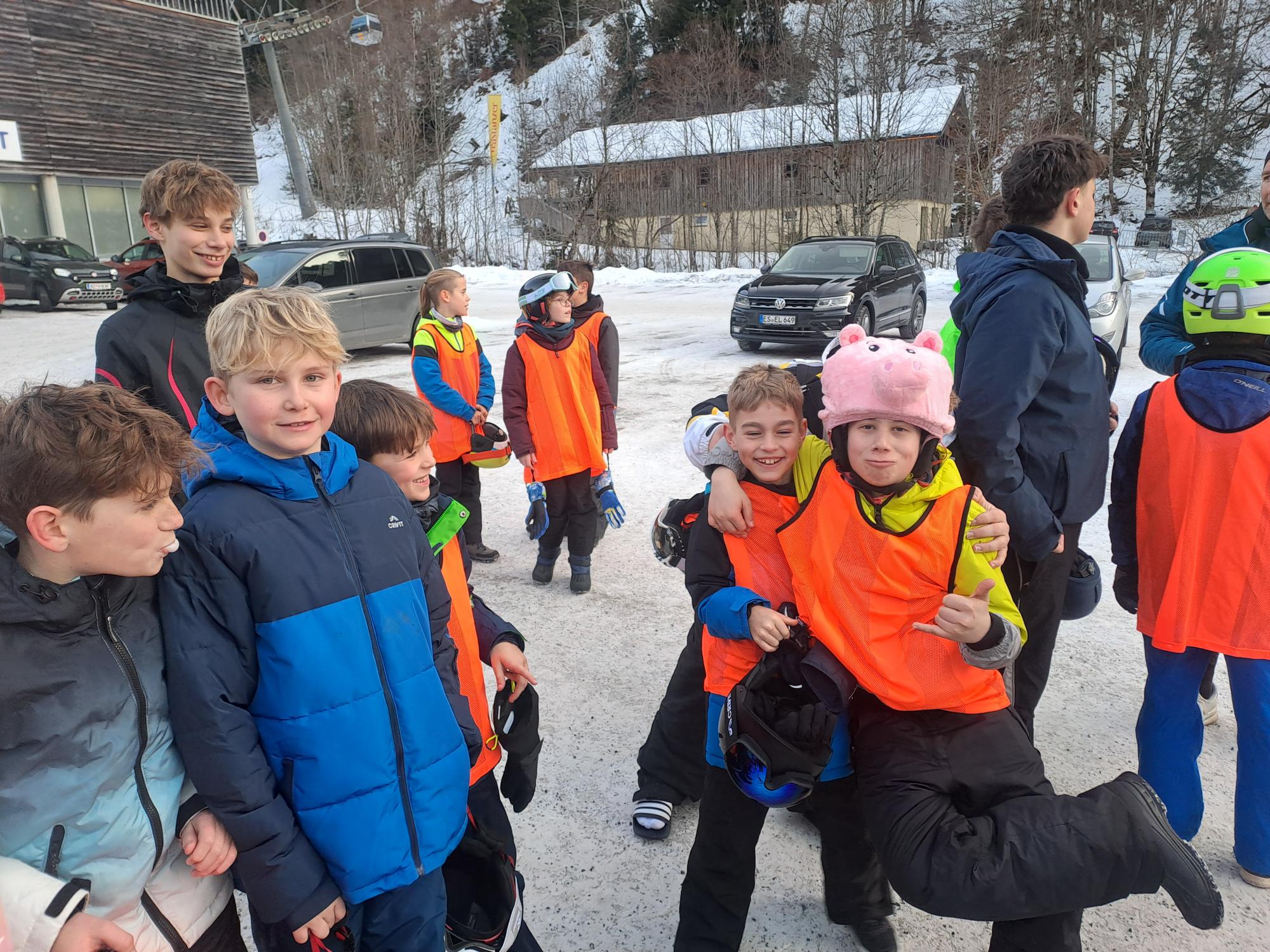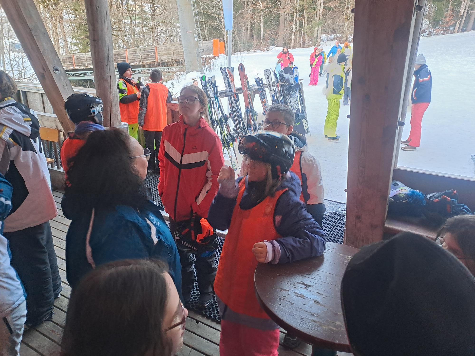 Dann ist jeder in seiner Skigruppe gefahren und wir haben uns zum Mittagessen mit allen auf der Hütte getroffen und uns gestärkt, damit wir für den Nachmittag genug Energie haben.