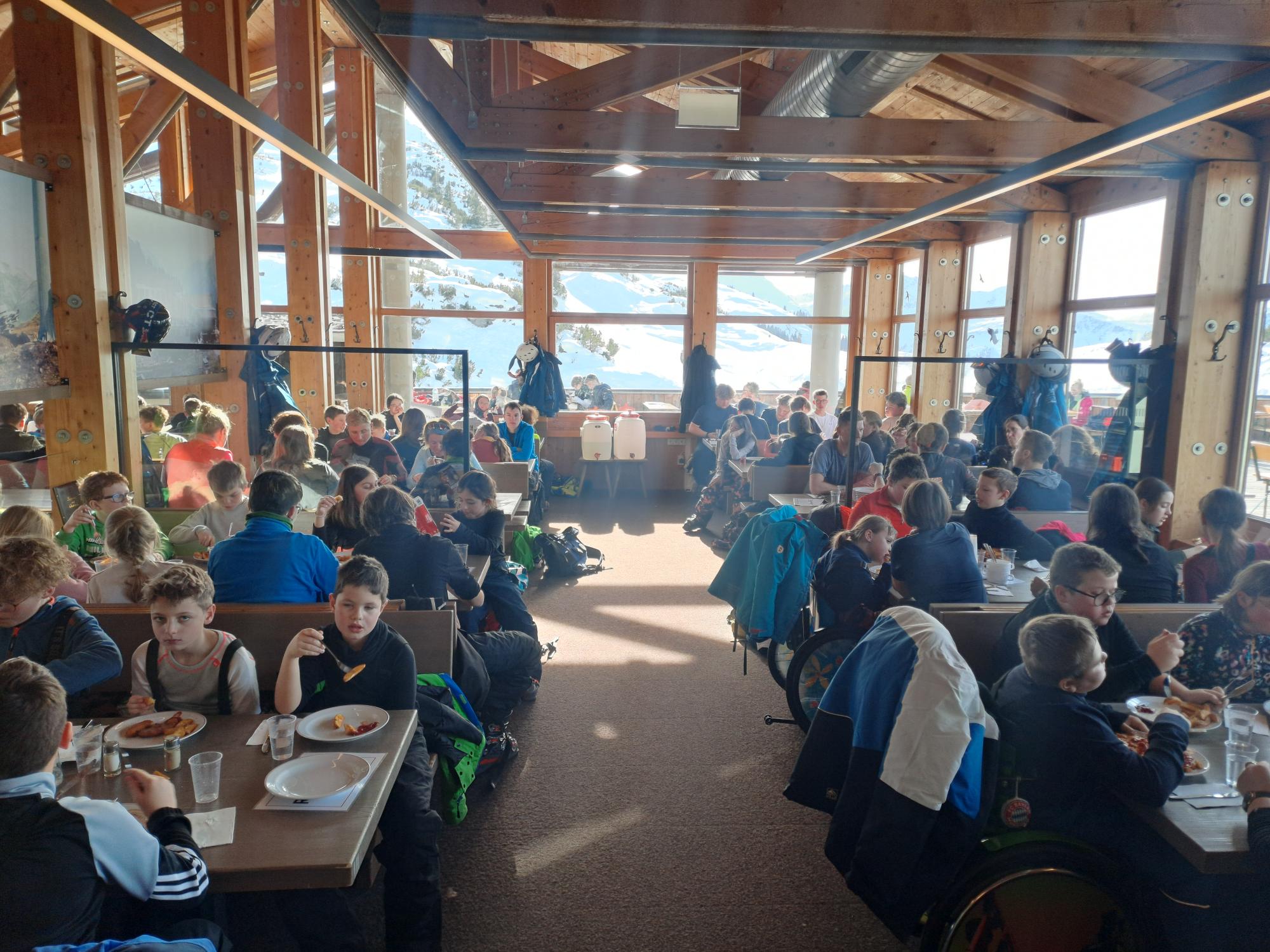 Nach einem sportlichen Vormittag haben wir uns beim Mittagessen mit Schnitzel und Pommes auf der Piste stärken können.
