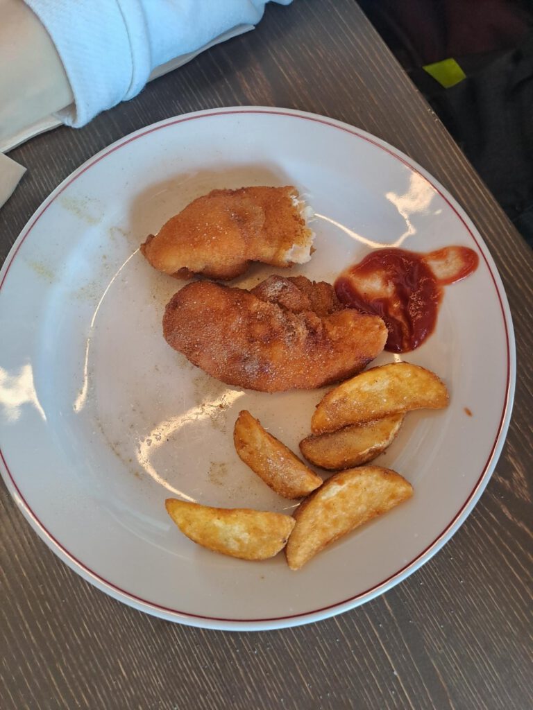 Zum Mittagessen gab es heute Chicken Nuggets und Kartoffelecken.
