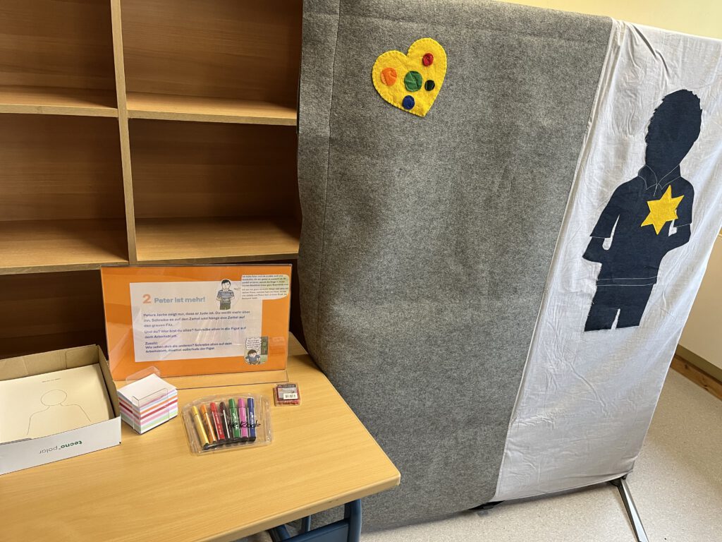 An den Stationen haben sich die Schülerinnen und Schüler mit Peters Ängsten und Hoffnungen kreativ auseinandergesetzt. Alle Stationen waren so aufgebaut, dass die Kinder zunächst etwas zu Peters Gefühlen bearbeitet und dann das Thema auf ihr eigenes Leben übertragen haben.