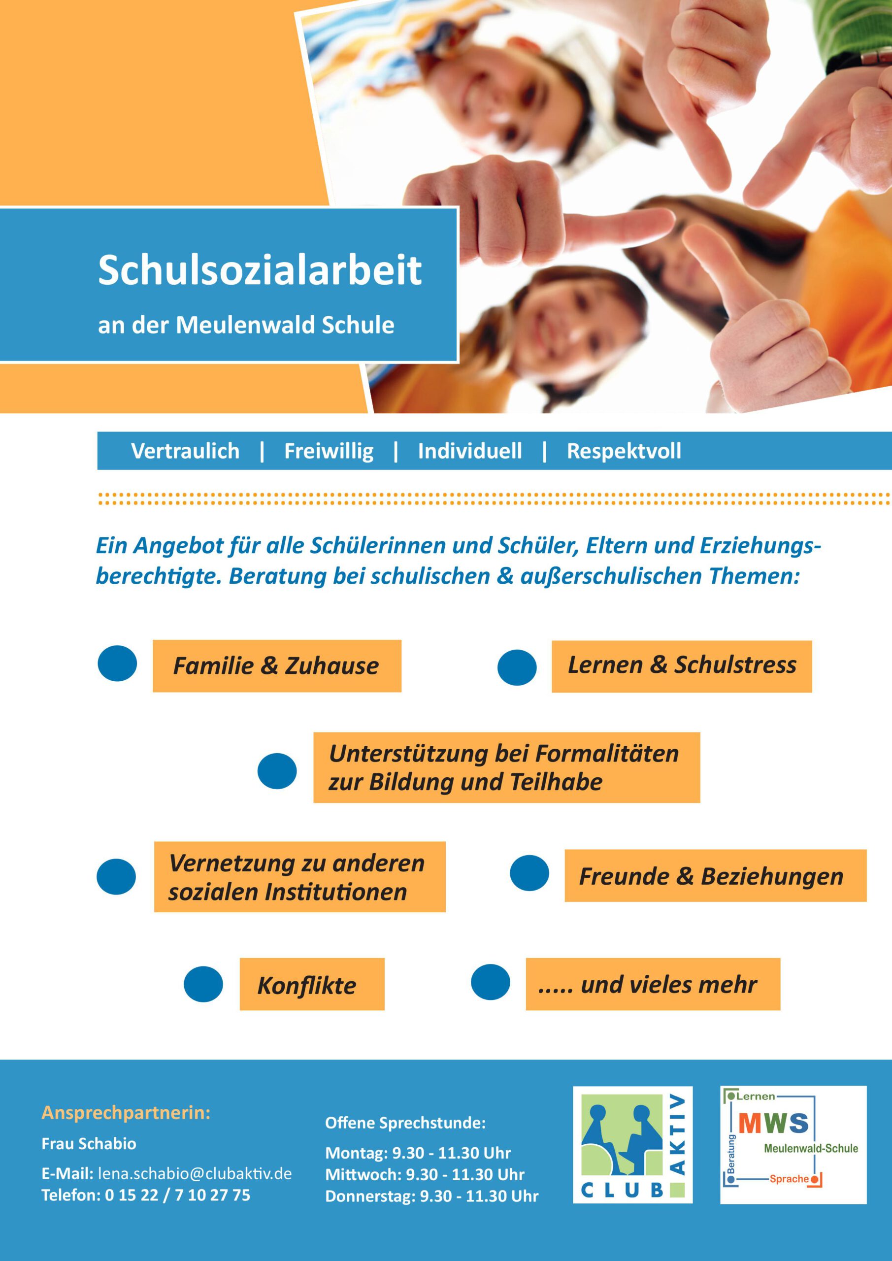 NEU: Schulsozialarbeit an der MWS- Mehr Infos zur Arbeit von Frau Schabio unter dem Punkt „Schulsozialarbeit“
