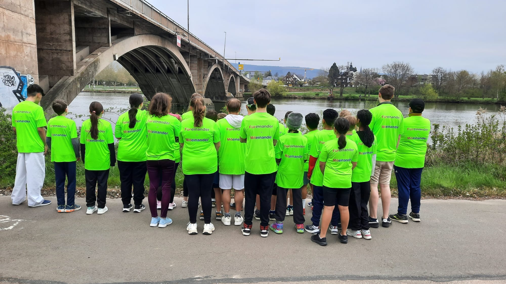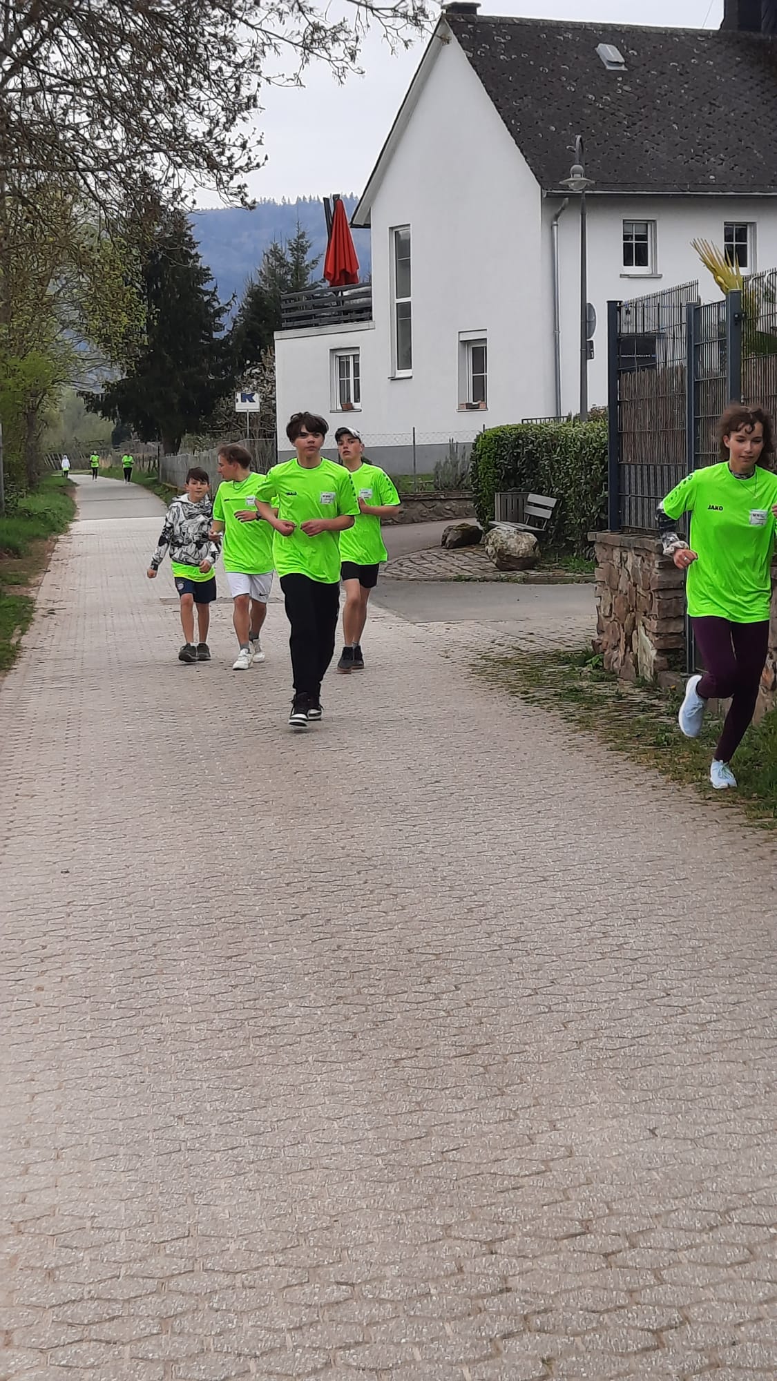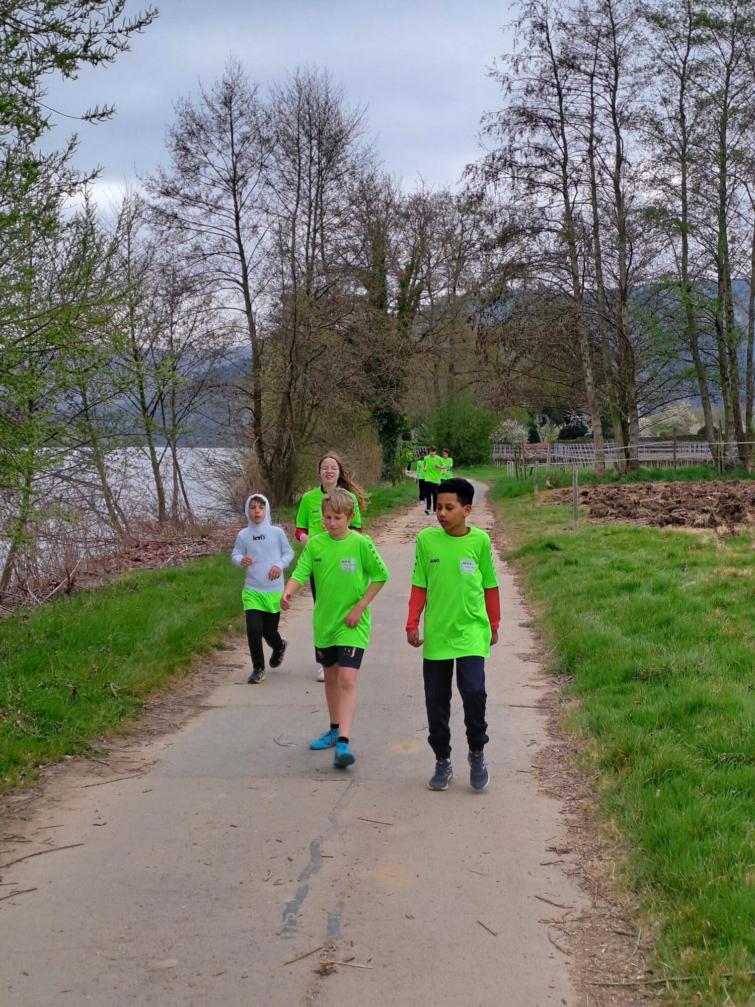 Wir haben uns im Foyer unserer Schule getroffen und haben uns unsere Schul-T-Shirts angezogen. Dann sind wir über die Schweicher Brücke gegangen. Dort haben wir am Sägewerk auf die anderen Läufer\innen die aus Kenn kamen gewatet. Von dort sind wir zusammen mit den anderen Laufer\innen zur der Kirche in Longuich gelaufen. Danach sind wir auf dem Radweg weiter bis zu dem Campingplatz in Riol gejoggt. Dann haben wir eine kleine Trinkpause gemacht und manche sind mit dem Schulbus zurück in die Schule gefahren. Die noch konnten, sind wieder bis zu der Kirche in Longuich gelaufen und von da sind auch noch ein paar Schüler\innen mit dem Schulbus zurück in die Schule gefahren. Die restlichen Schüler\innen sind weiter bis zu dem Sägewerk zurück gejoggt und von da aus zu Fuß zurück in die Schule gegangen.